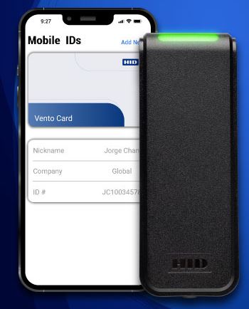 El lector de HID Vento es un lector de alta seguridad RFID y Bluetooth, para uso exclusivo con la tarjeta HID Vento, y credenciales de acceso móvil HID; ofrece soporte de CSN para credenciales seleccionadas. Está habilitado para utilizar con teléfonos celulares tan pronto se instala. El lector es configurable en sitio, y está diseñado para ahorrar energÃa, por medio de la gestión de energÃa inteligente (IPM)